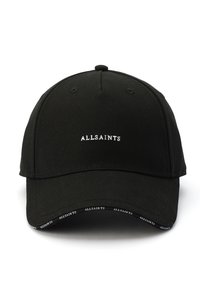 The AllSaints khaki cotton baseball cap features an embroidered AllSaints logo, complete with white AllSaints branding through the peak. It also features an adjustable leather backstrap with a branded ramskull logo clip Dimensions - Circumference: 58 cm
