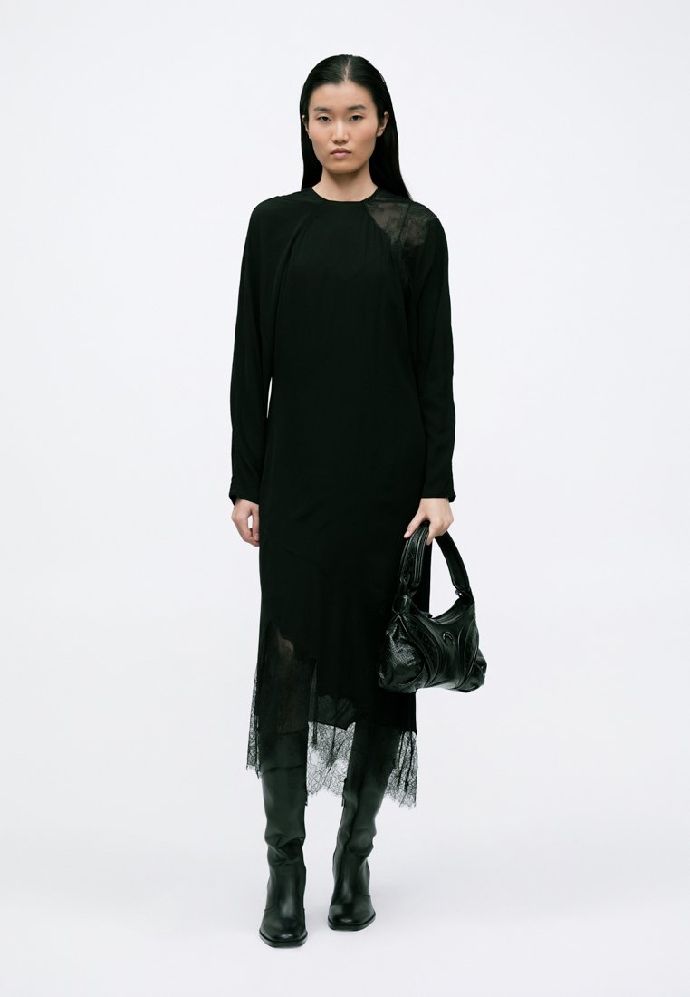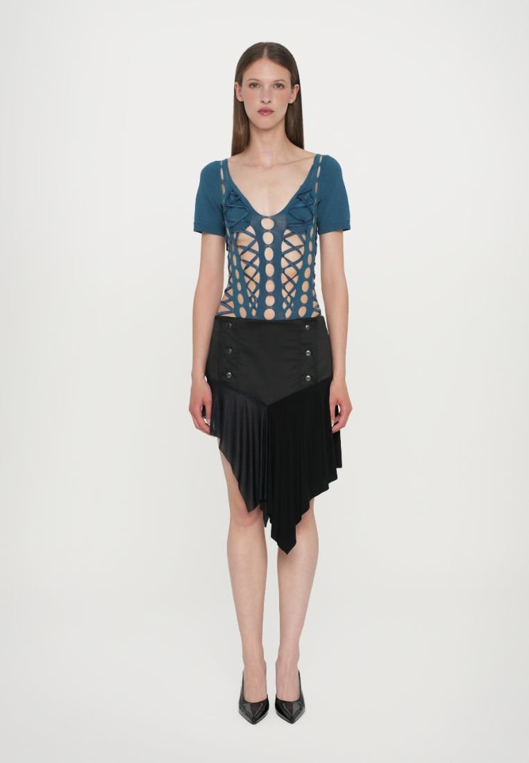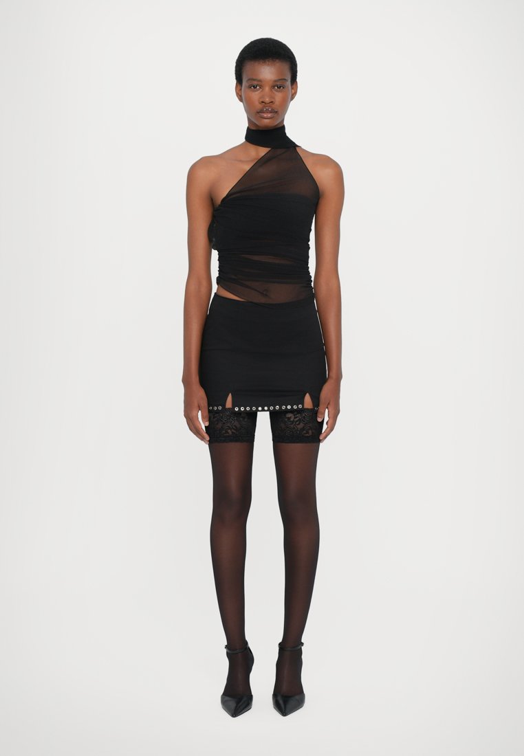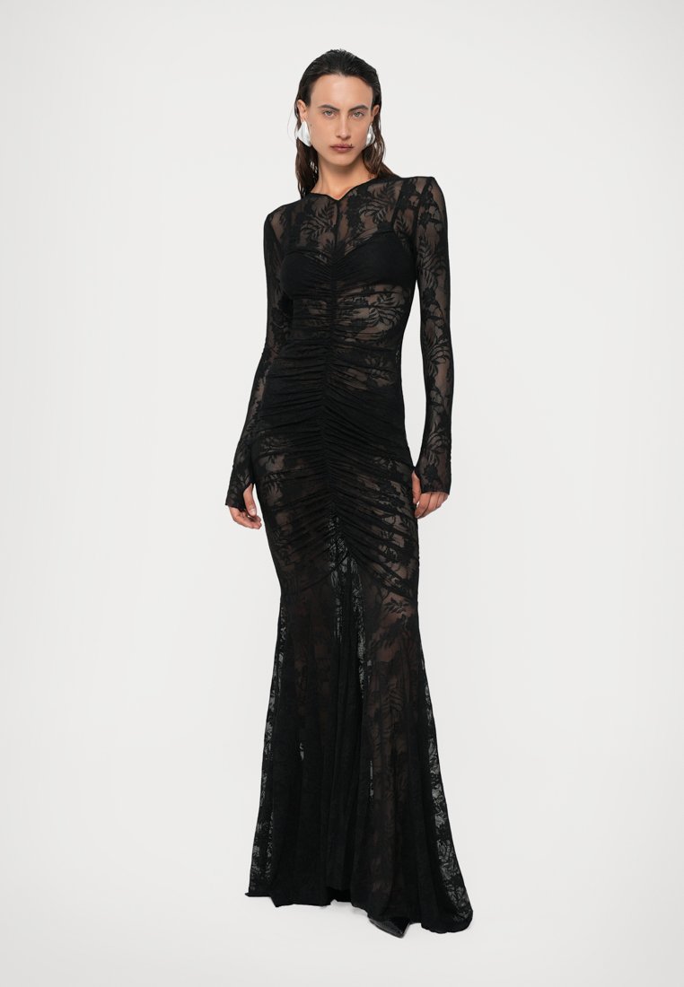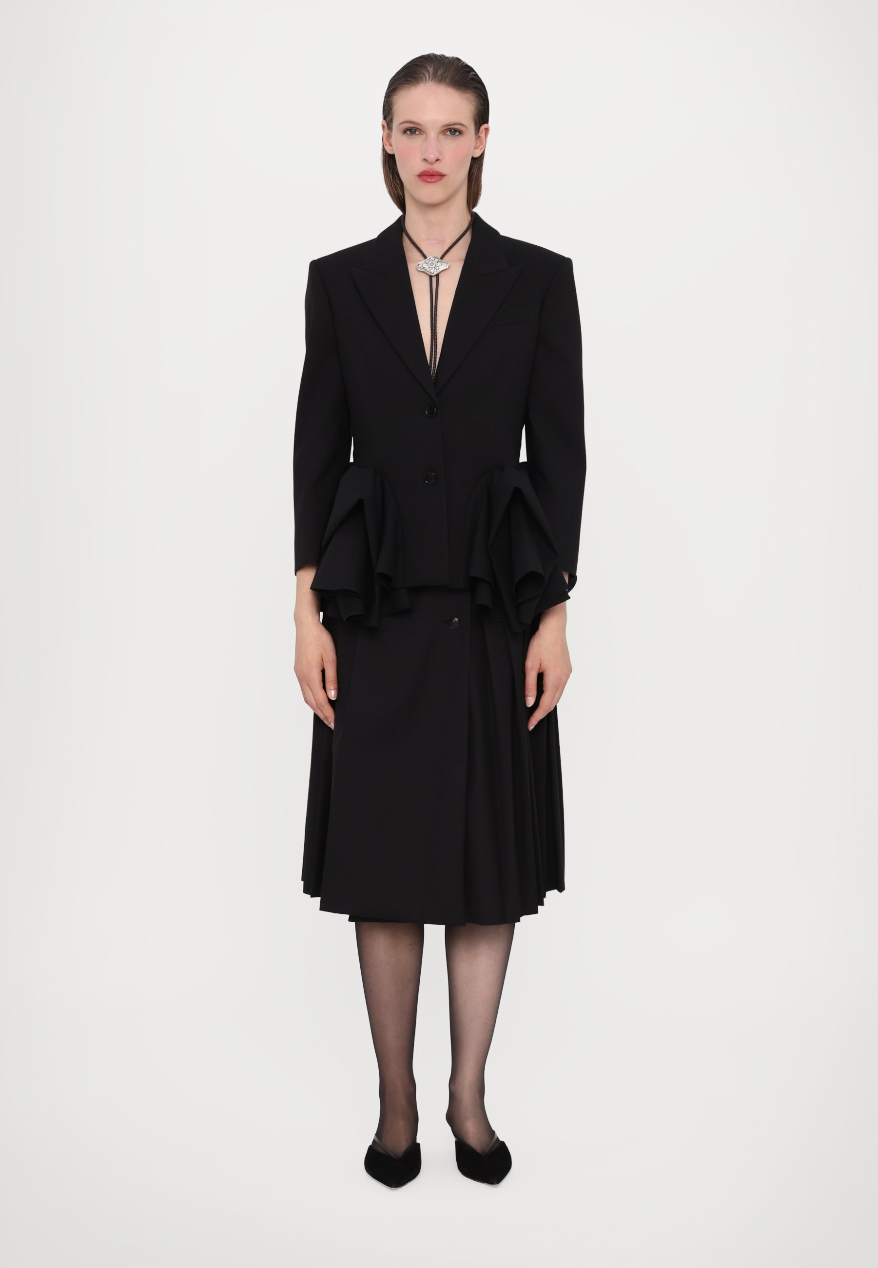 An after-hours allure of structured lace, leather, and rich textures. A sophisticated take on neo-goth aesthetic.