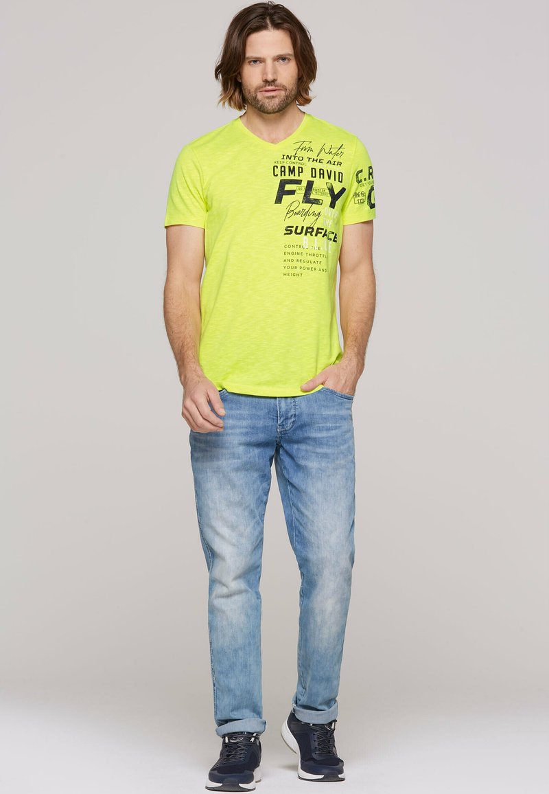 V-NECK UND LABEL PRINTS - Print T-shirt - electric yellow