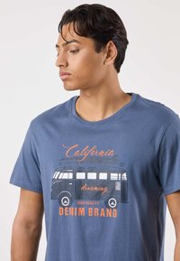 T-shirt from Denim Factory made from soft and stretchy material with a regular fit. Features a crew neckline, short sleeves, and a large logo print on the front. Perfect for any occasion!