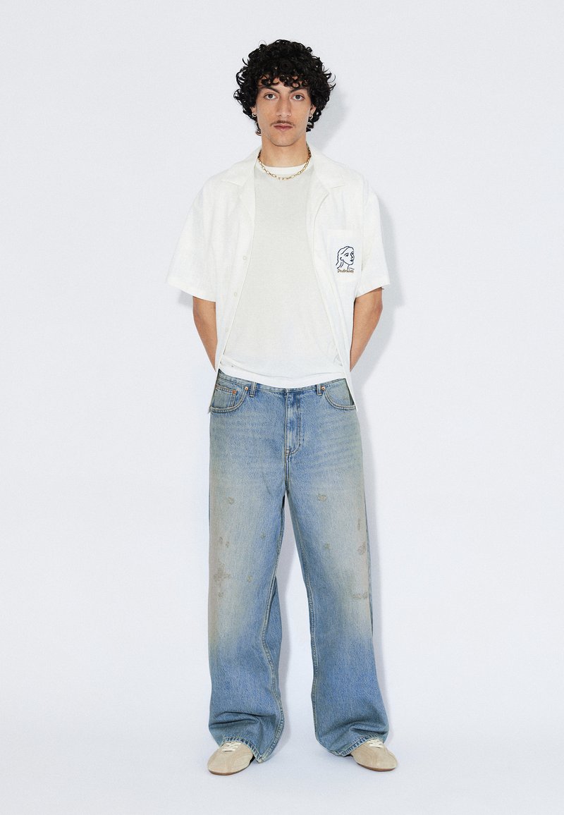 Baggy fit jeans with a mid waist and a wide straight leg. Classic 5-pocket design with a zip fly. These jeans are crafted from a rigid, non-stretch denim fabric.