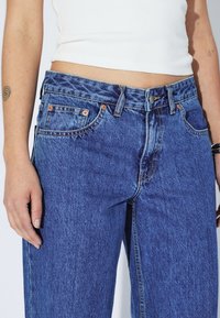 Regular fit jeans with a low waist and a slouchy flared leg. Classic 5-pocket design with a zip fly. These jeans are crafted from a rigid, non-stretch denim fabric.