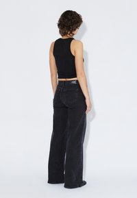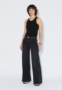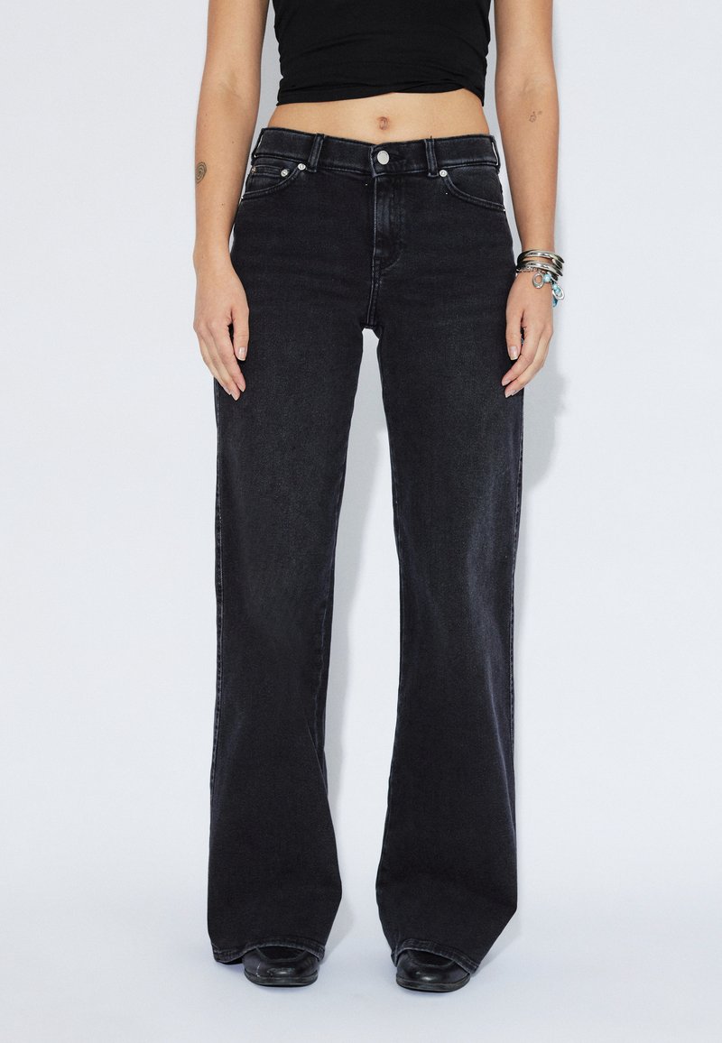 Slim fit jeans with a mid waist and a wide slightly flared leg. Classic 5-pocket design with a zip fly. These jeans are made from a high stretch denim fabric.