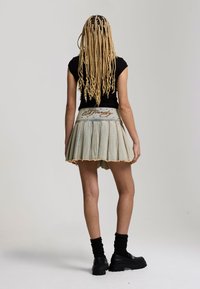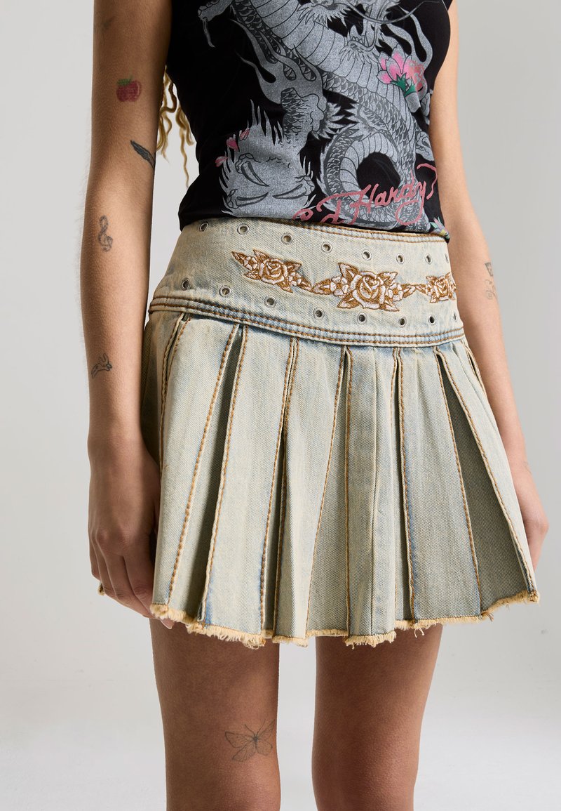 Womens Contrast Stitch Pleated Rose Regular Skirt in Bleach Denim
