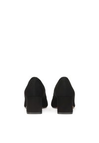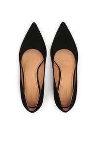 Elegant black suede pumps , set on a wide heel and finished with a pointed toe, are a true masterpiece of fashion and sophisticated style. Their simple yet unique design attracts attention, while providing unparalleled comfort all day long. The soft suede upper is not only durable, but also pleasant to the touch, making these shoes extremely comfortable. The wide heel adds stability and allows you to step with confidence, without worrying about leg fatigue. These minimalist black pumps are versatile and perfect for a variety of situations.