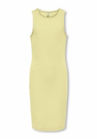 Pink sleeveless dress made of ribbed fabric, featuring a round neckline and a straight silhouette. No patterns or accents are present.
