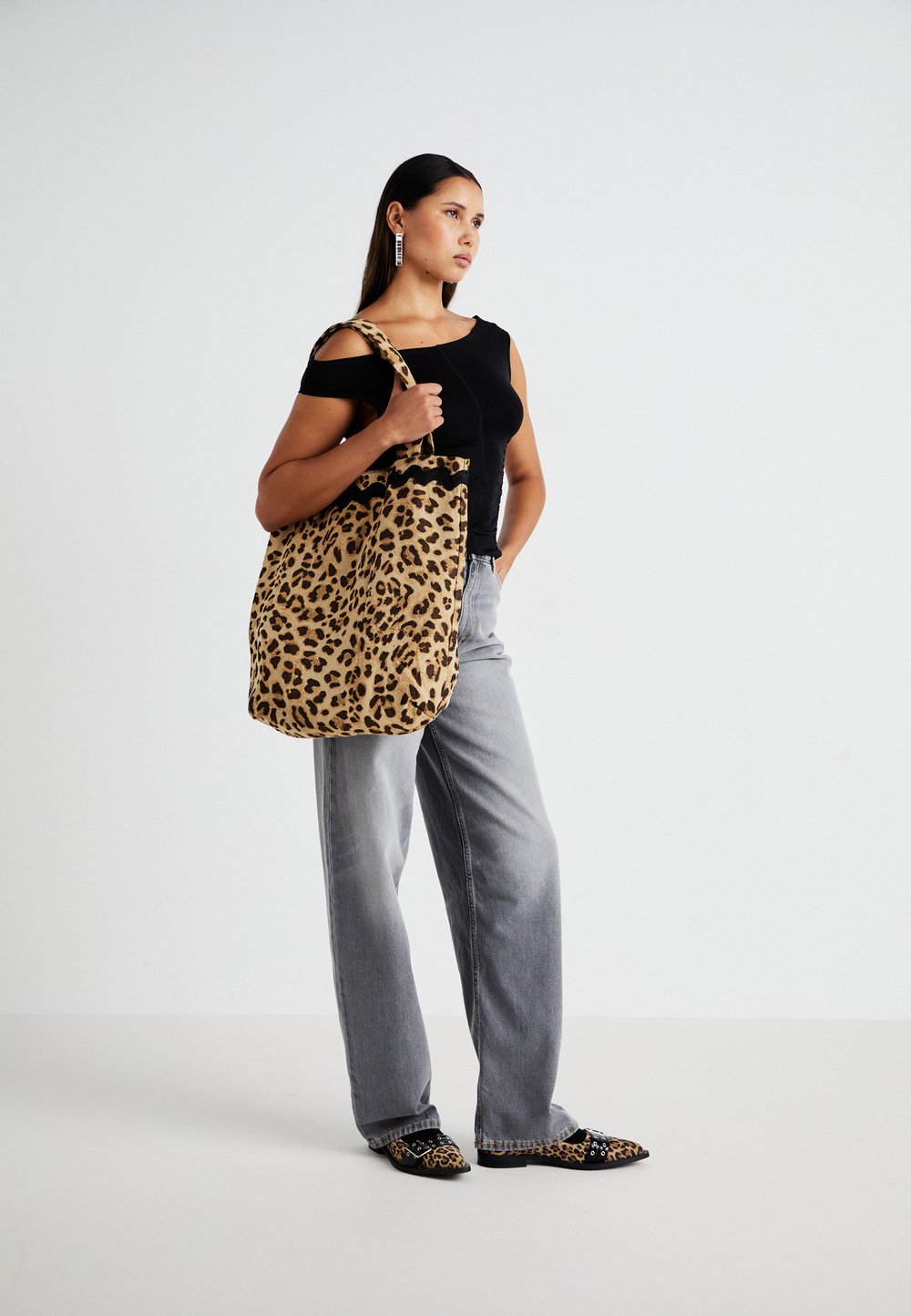 RUCHED OFF SHOULDER - Print T-shirt - black