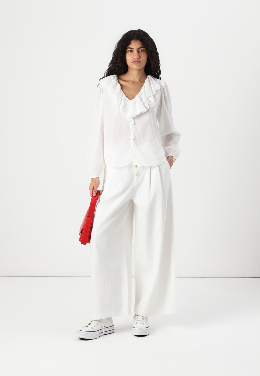RUFFLE TRIM - Button-down blouse - new off white