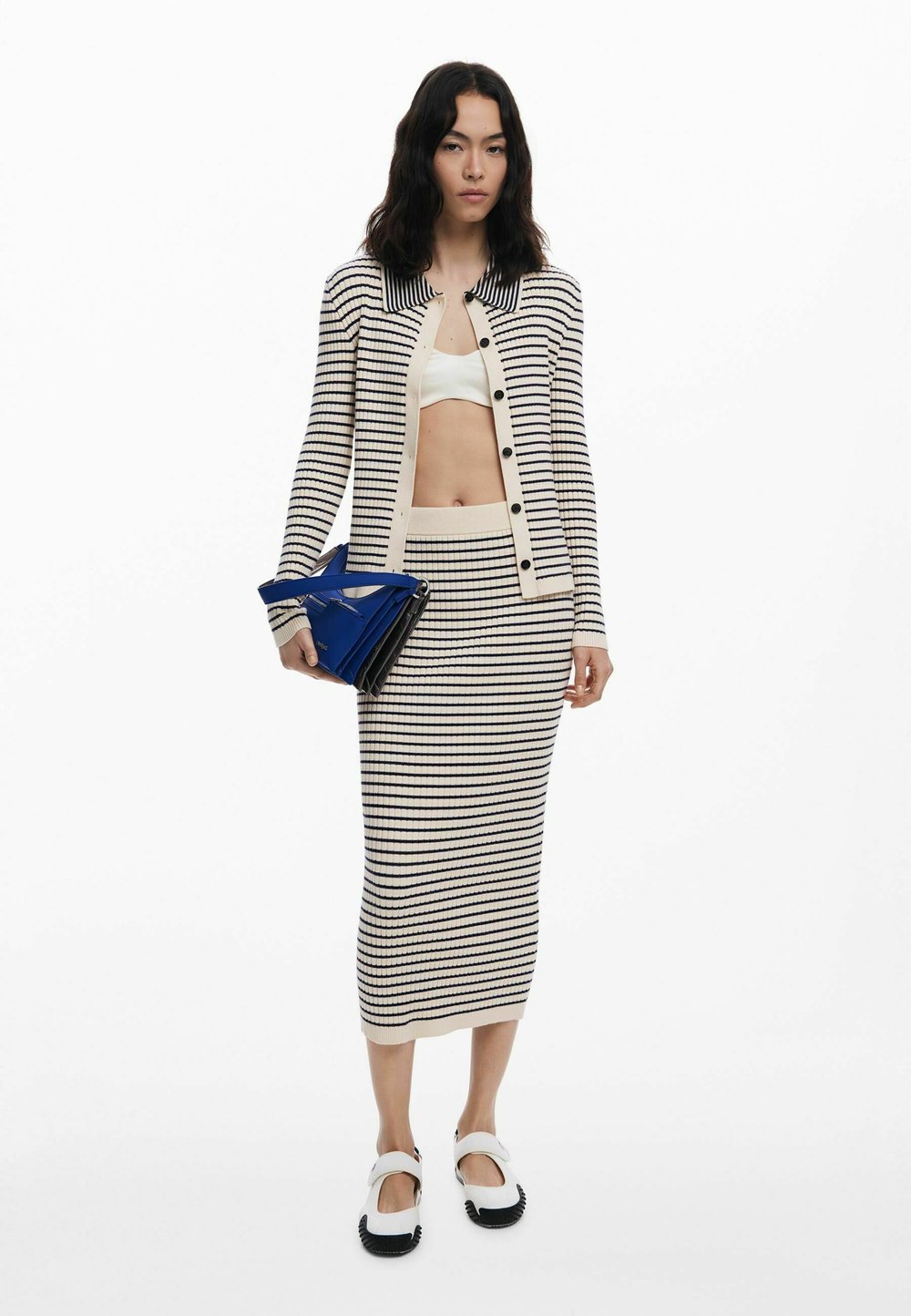 STRIPED MIDI - Pencil skirt - white