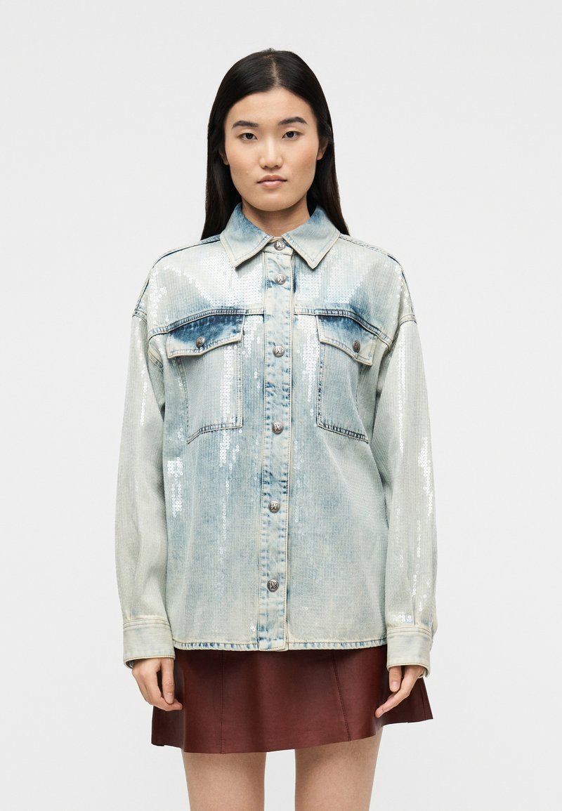 CURVED LOGO SHIRT - Button-down blouse - light blue