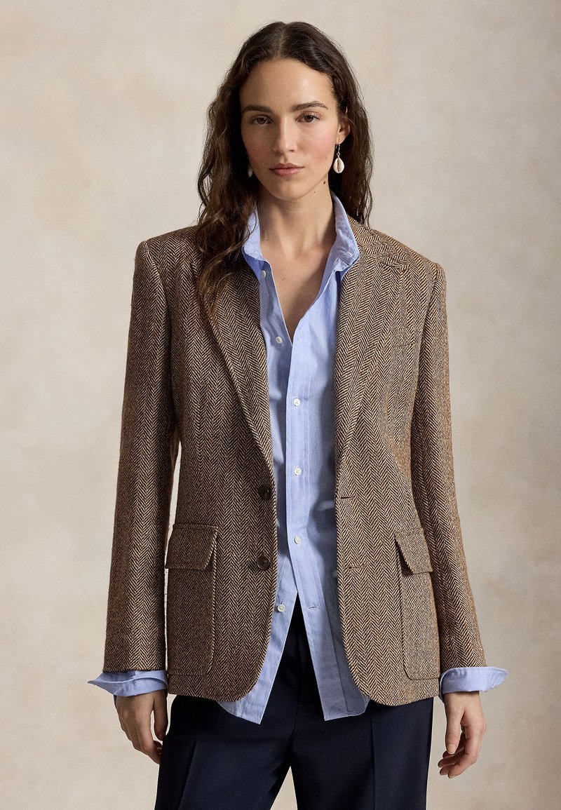 SINGLE BREASTED HERRINGBONE BLAZER - Blazer - brown/cream
