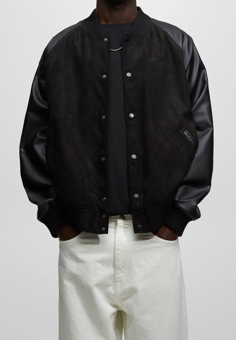 PULL&BEARPre-owned Faux leather jacket - mottled black