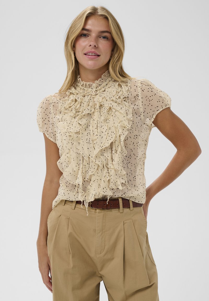 LILJA CRINKLE - Button-down blouse - creme black mini dots