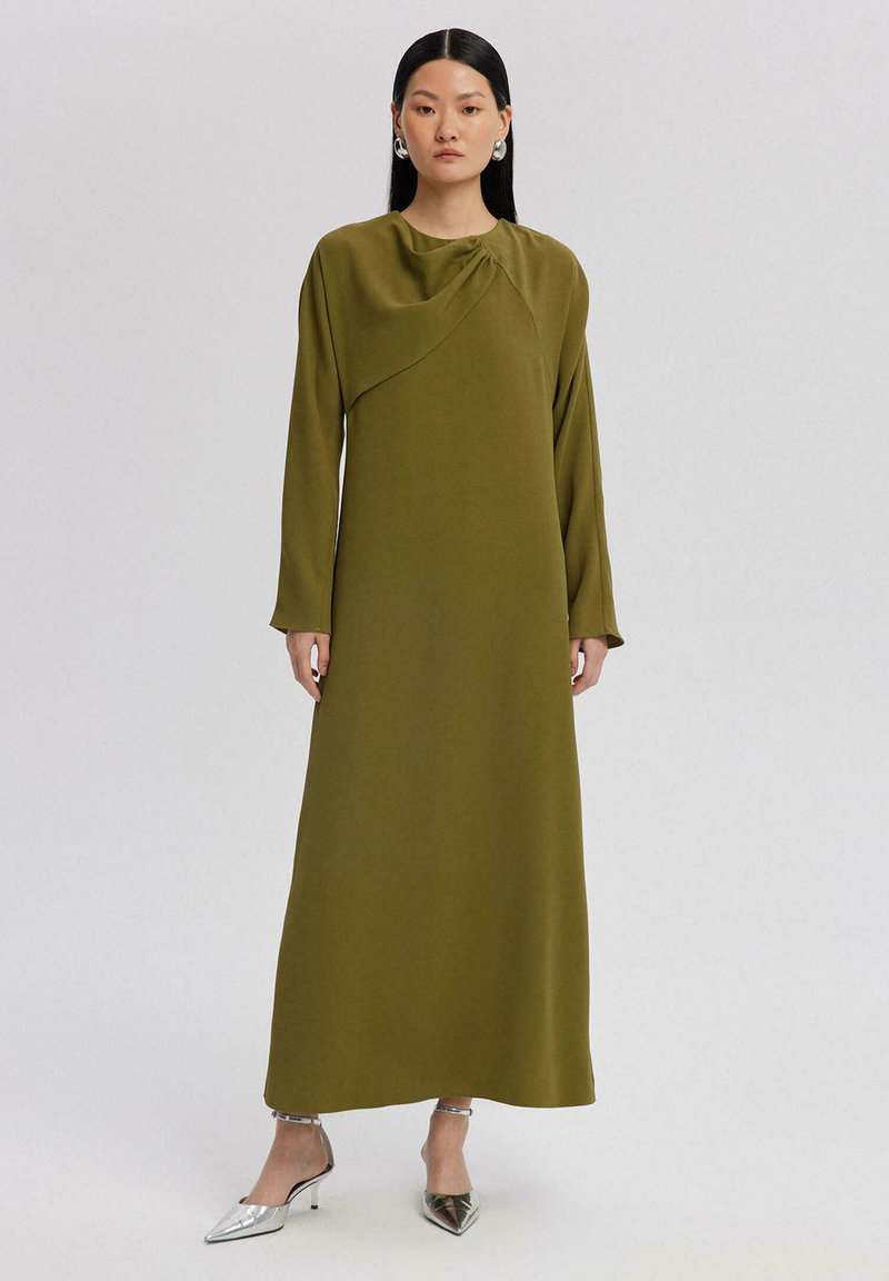 CREPE WITH ASYMMETRIC NECKLINE - Maxi dress - khaki