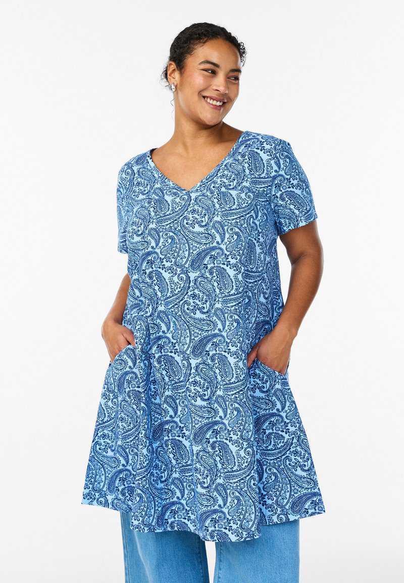 Plus sizeheart_outlinedKaffe CurveKAFFE CURVE KCISMA AMI DRESS - Day dress - blue graphic flower€69.95